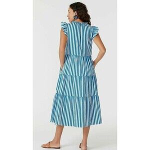 J. Crew Tiered Maxi cotton dress in blue and white stripe. Small