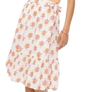 J. Crew Tiered Midi Skirt Fuschia/Orange Floral on White Waist Tie Sz 00 NWT