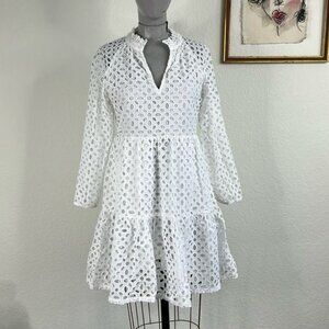 J Crew Tiered Popover Dress in Embroidered Eyelet A Line Swing Dress