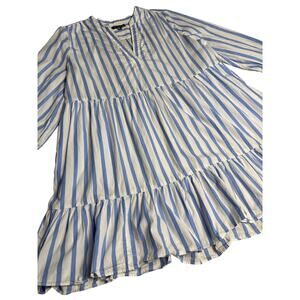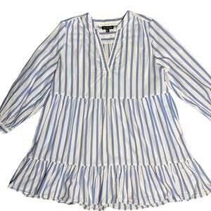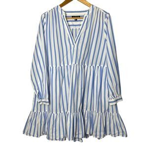 J. Crew Tiered Popover Poplin Mini Dress Blue Striped Size Medium