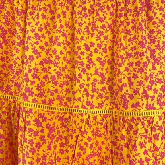 J. Crew Tiered Pull On Midi Skirt Medium Tossed Bouquet Print Floral Boho NWT