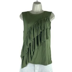 J. Crew Tiered Ruffle Drapey Crew Neck Tank Top Green Size M