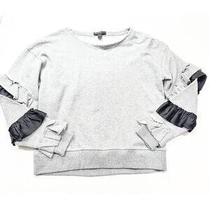 J. Crew Tiered Ruffle Sleeve Crew Neck Sweater Gray Size Small