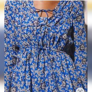 J Crew Tiered Tie Front Beach Dress in Colbalt Floral Cotton Voile XSMALL NWT