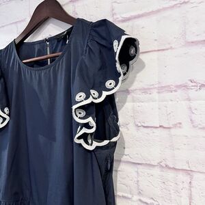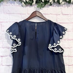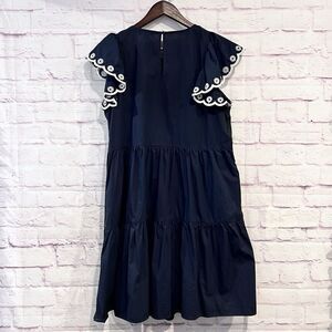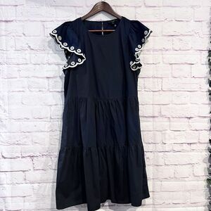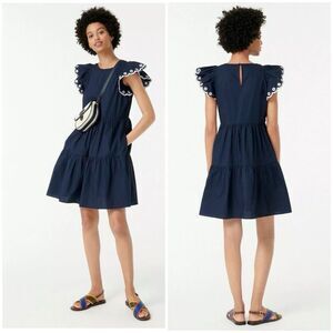 J. Crew Tiered embroidered Ruffle Sleeve Dress Cotton Lined Pockets Size Medium
