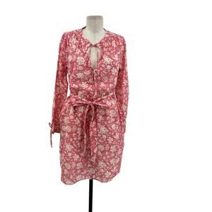 J. Crew Tie-waist Tunic Beach Dress Tossed Floral Print Pink Size XS