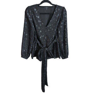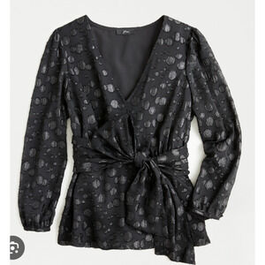 J. Crew Tie-waist V-neck top in metallic dot jacquard size S