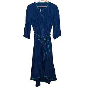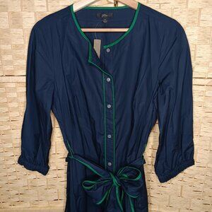 J. Crew Tipped Poplin Cotton High Low Ruffle Dress Small 4 NWT Navy