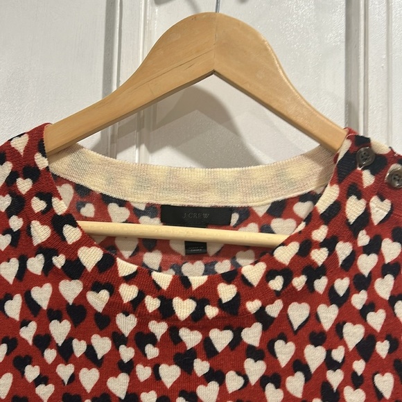 J. Crew Tippi Merino Wool Crew Neck Heart Print Sweater - Size Small