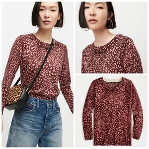 🆕 J. Crew Tipsy Pullover Long Sleeve Sweater in Pink Leopard Size Small
