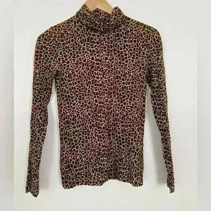J Crew Tissue Turtleneck Top Womens XS Extra Small Animal Print Long Sleeve y2k