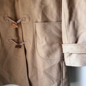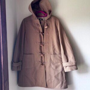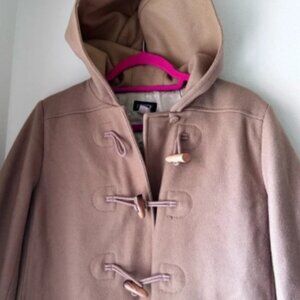 Wool blend camel colored coat with toggle closures. Ideal for chilly days.