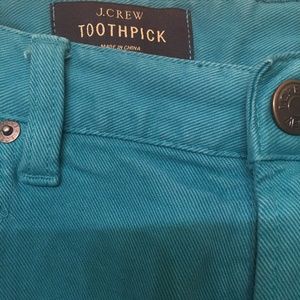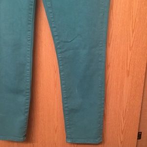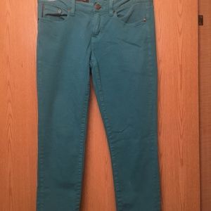 EUC stretch toothpick cropped jeans in a beautiful teal color.