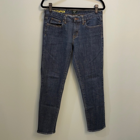 J. Crew Toothpick Jeans, size 29. Sits at hip, fitted through hip and thigh. Excellent condition! 98% cotton 2% spandex
