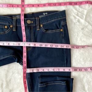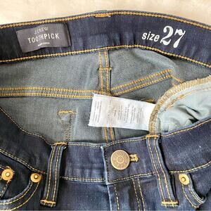 J. Crew toothpick jeans in dark wash. Cotton fabric with a bit of stretch. They’re in excellent preowned condition. Size 27 with 27” inseam. See photos for measurements.