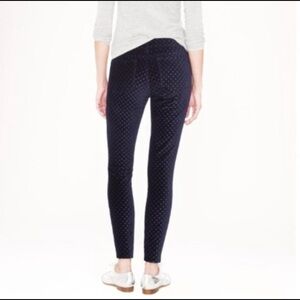 J. Crew Toothpick Navy Velvet Polka Dot Pants