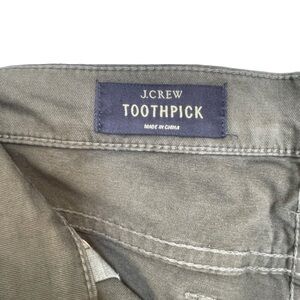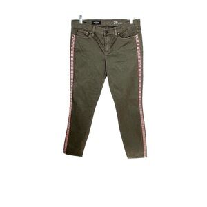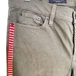 J. Crew Toothpick Olive Green Five Pocket Jeans Red/White Side Stripes Size 30
