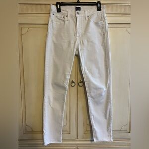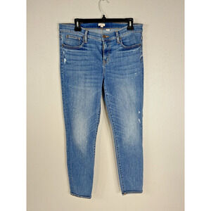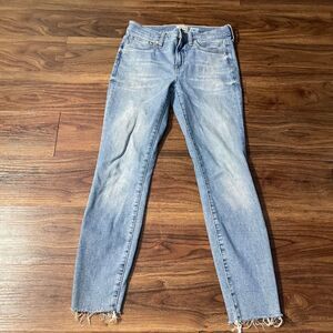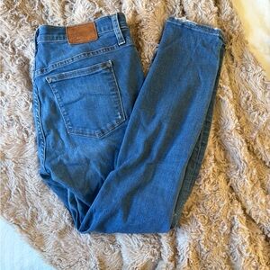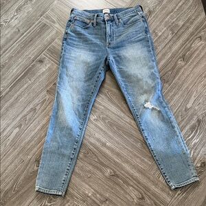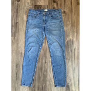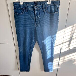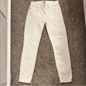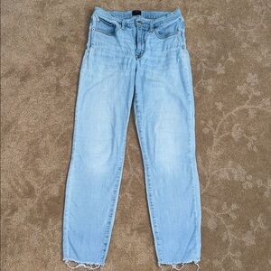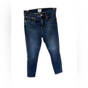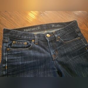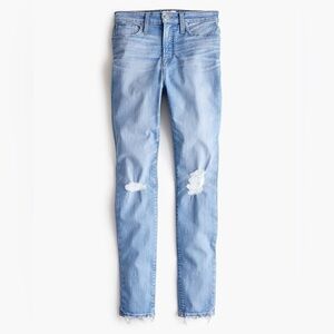 J. Crew Toothpick jean in classic rinse wash 46240 Factory whiskering, wear, grinding and distressing.