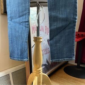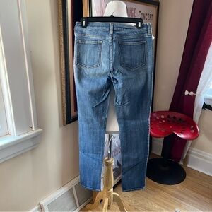 These would be a fabulous addition to any closet that loves J Crew denim. Easily be dressed up or down depending on the occasion. 5 functioning pockets. Zip and button closure. Some stretch. Style this pair of jeans with designer shoes and a great top and you will be walking out in supreme style and comfort. Some manufactured distress/feathering.