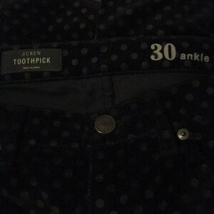 J. Crew Toothpick jean in velvet dot Sz 30 Ankle