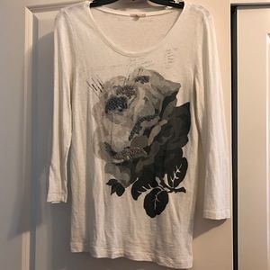 J Crew brand top size L has two small paint spots on one of the sleeves