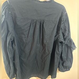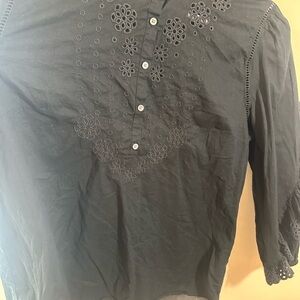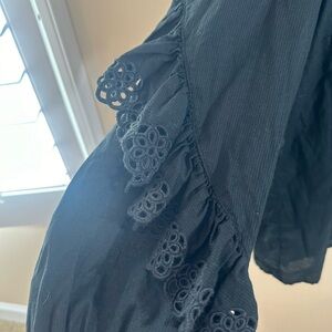 J Crew Top Black Eyelet Embroidered Ruffle Popover Blouse Large AR971
