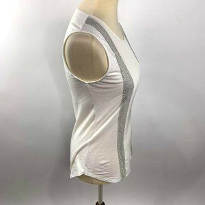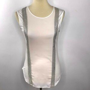 J. Crew Top Mesh Panel Metal Bead Embellished Stripes Off White or Cream Crew XS