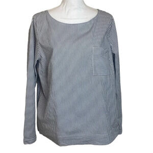 J Crew Top Organic Cotton Striped Box Blouse Black & White Long Sleeve Pocket