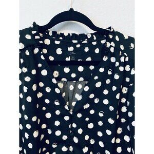 J Crew Top Womens 10 Black Painted Dot Peplum Satin Crepe 3/4 Sleeve Romantic