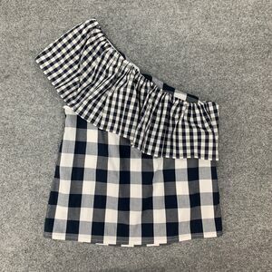J Crew Top Womens 2 Navy Gingham Plaid Cotton Stretch Poplin Ruffle One Shoulder