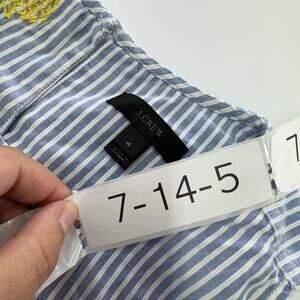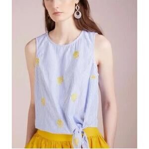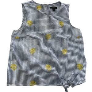 J Crew Top Womens 4 Blue White Stripe Pineapple Embroidered Tie Front Seersucker