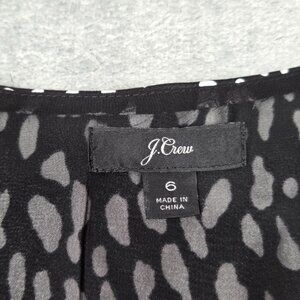 J Crew Top Womens 6 Black White Animal Print Peplum Satin Crepe Preppy Blouse