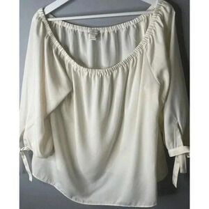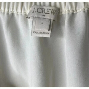 J Crew Top Womens Large Beige Button Neck Blouse Ruffles Flowy Long Sleeve