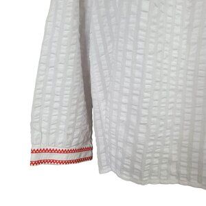 J Crew Top Womens MED White Red Floral Embroidered Seersucker Textured Blouse