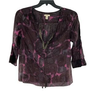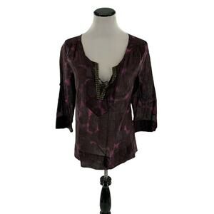 J. Crew Top Women's Size 4 3/4 Multicolor Sleeve Beaded V-Neckline Casual Blouse