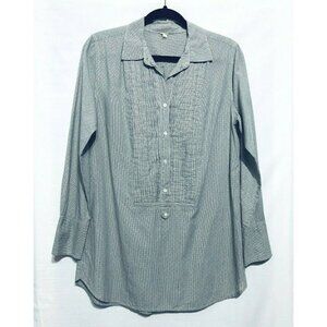 J Crew Top Womens Small Blue Striped Pintuck Bib Front Popover Tunic 29932