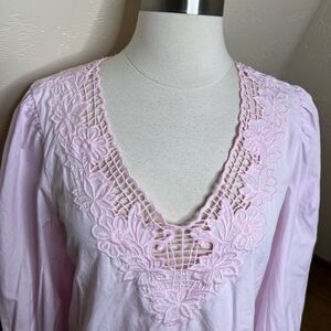 J Crew Top Womens Small Pink V Neck Eyelet Trim Cotton Long Sleeve Preppy