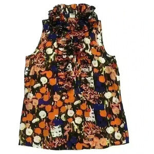 J. Crew Top Womens Sz 0 Ruffle Front Sleeveless Blouse Silk Boho Cottagecore