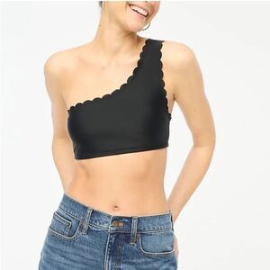 J Crew Women's Scalloped One-Shoulder Crop Top in Black Size XS. A playful summer top that's perfect for vacation and beach days.