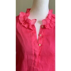 J. Crew Top XS Ruffles Sleeveless Neon Pink Barbie Sheer Summer Shirt 00 Office