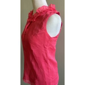 J. Crew Top XS Ruffles Sleeveless Neon Pink Barbie Sheer Summer Shirt 00 Office