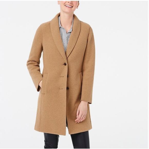 J Crew Topcoat Italian Boiled Wool Coat Jacket AB477 Camel Tan Size 14