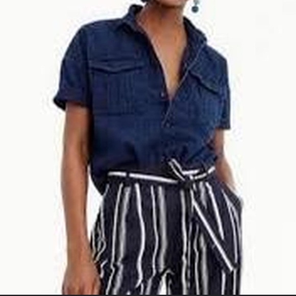 J. Crew Trademark Utility Pocket Denim Chambray Shirt Top Camp Blouse Button Up
