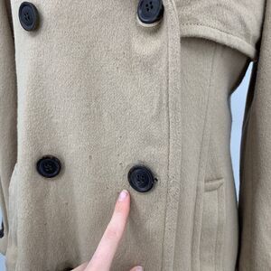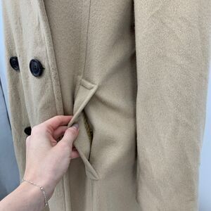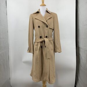 J Crew Trench Coat Women 4 Camel Wool Satin Shoulder Pads Blazer *READ CONDITION
