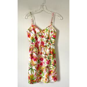 J. Crew Tropical Floral Pocket Strap Mini Dress Cream Pink Green Size 2