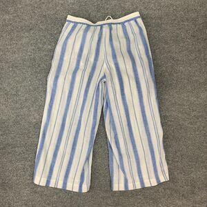J CREW TROUSER PANT WOMEN S SMALL WHITE STRIPE COTTON WIDE LEG TASSEL DRAWSTRING
