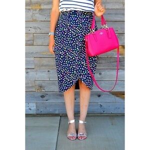 J Crew | Tulip Faux Wrap Skirt In Ratti Happy Cat Print Navy Women's Size 0