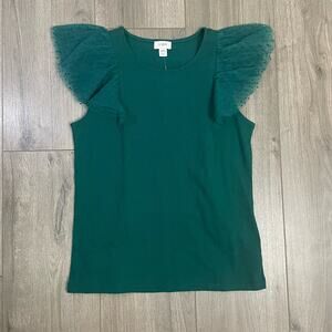 J Crew Tulle Polka Dot Ruffle Shoulder Fashion Tank Top