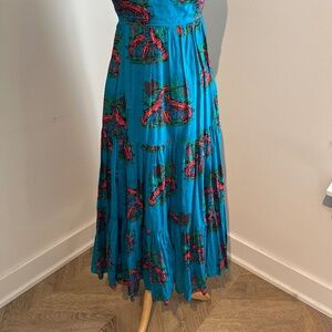A spaghetti strap maxi dress from J. Crew. Size 4. Great condition, empire waist, tiered bottom, adjustable straps, side zipper, smocked upper back, has pockets.