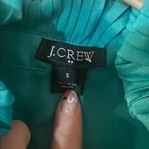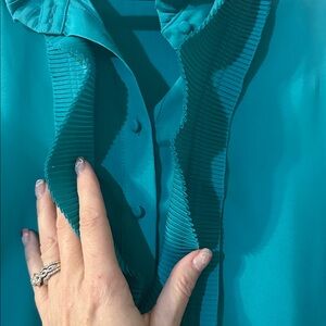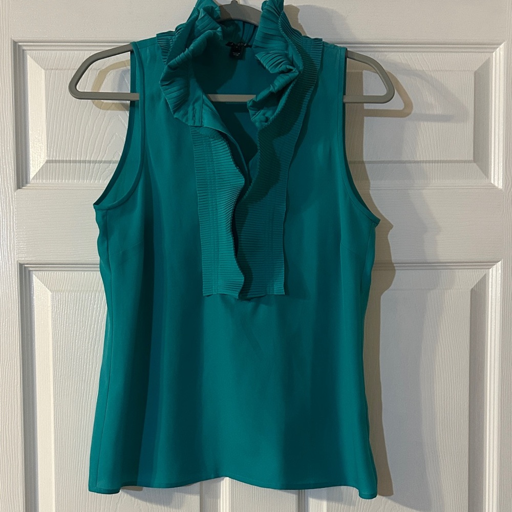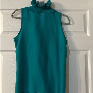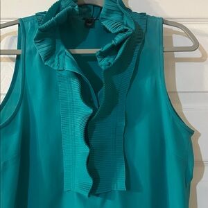 Stylish turquoise blouse with ruffle neckline. Sleeveless design for versatile wear. Perfect condition